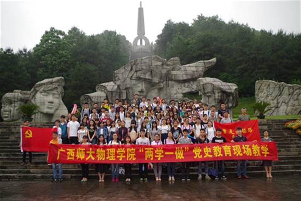 为推动“两学一做”学习教育的深入开展,创新方式讲党课,6月初,物理学院2013级学生党员及第31期党校学员赴兴安红军长征突破湘江烈士纪念碑园开展活动,纪念中国工农红军长征胜利80周年,以现场教学的形式给学生党员和入党积极分子上了一堂生动的党史学习教育课。