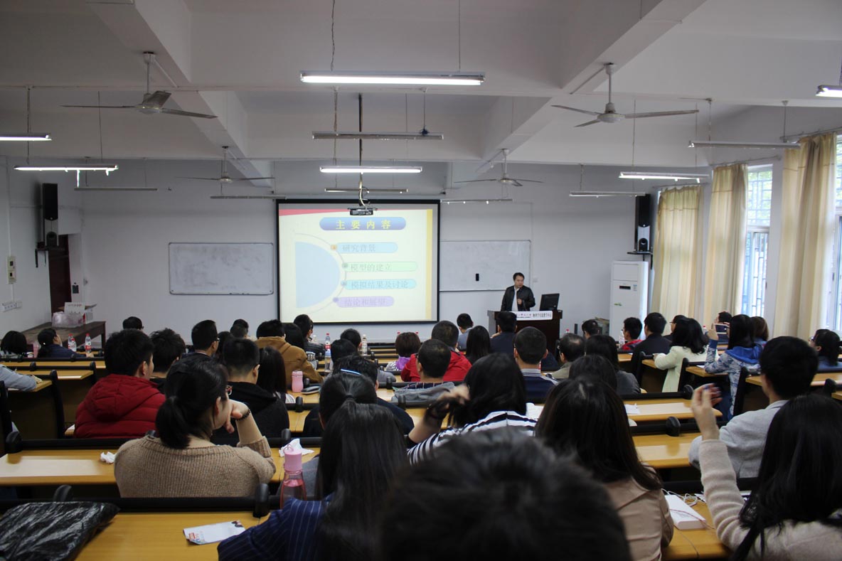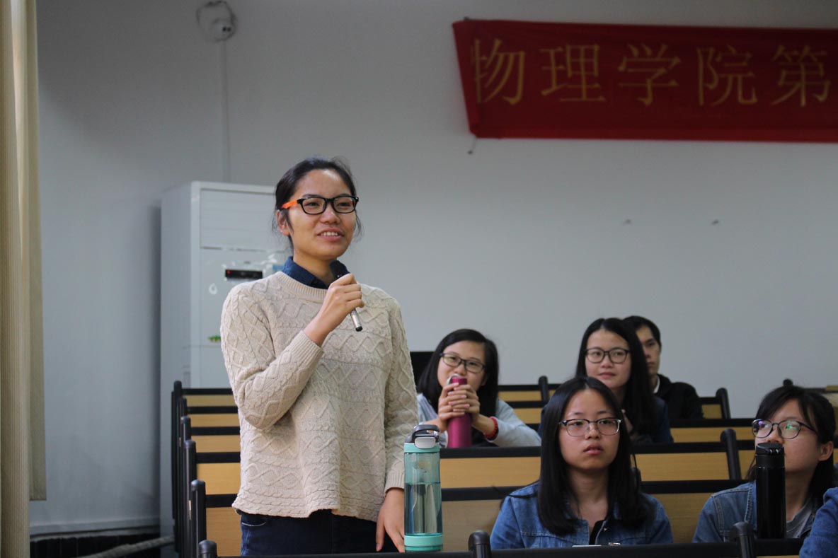 邝华教授进行了题为《城市路网四向交通流的动力学建模及时空演化斑图研究》的报告,主要阐述此项工作期间取得的科研成果及发表的论文内容;孙小军教授以原子核物理为主要研究方向,会上就原子核反应理论及其在核数据库中的应用为大家进行了详细的介绍;而郭云教授以退禁闭相变模型为主题的《Matrix Models for Deconfinement in Pure Gauge Theories》进行报告,报告主要使用英文,在汇报中直观地展现了国际化的科研方向。沈洪涛老师在报告中主要介绍了关于利用宇宙生成核素CI36测定天坑暴露年龄的研究,并为大家展示了我院即将配置的加速器实验室效果图;胡君辉副教授为大家讲解了分布式光纤传感器的相关知识、科研成果、未来的发展趋势及发表的相关文章和专利;张殷副教授的汇报则是根据我国教师培训现状而进行的对一种基于培训需求的科学教师分类方法的探索;陈海深老师就引导学生明白抽象概念的方法,以地磁场为例为大家展示了他的教学研究成果。每位老师的汇报完毕,台下老师、学生纷纷提问,现场气氛活跃。
