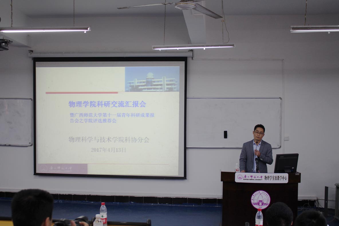 学院新闻2017年4月13日上午9点,必一·运动(B-Sports)官方网站与技术学院在物理实验楼一楼阶级教室召开了物理学院科研交流汇报会暨广西师范大学第十一届青年科研成果汇报会之学院评选推荐会。学院院长王宁、书记黄晓昀、副院长胡君辉、孙小军老师和学院多名老师莅临现场,其中邝华、孙小军、胡君辉、沈洪涛、郭云、张殷、陈海深等7位老师就2014年至2016年期间的科研成果进行了汇报。整场报告会内容丰富,精彩呈现,学术氛围浓厚,与会老师和研究生都表示受益匪浅。