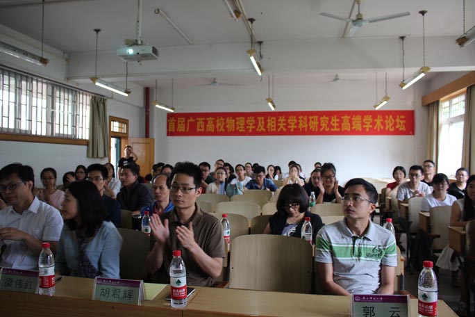 学院新闻为加强广西各高校物理学及相关学科研究生之间的学术交流与思想碰撞,拓宽学术视野,提高创新能力,营造浓厚的学术氛围,推动物理学及相关学科研究的进一步发展,我院依托广西教育厅批准的“广西高校研究生教育创新计划项目”,搭建高层次的学术交流平台,于2017年6月18日在理科楼205、206教室举办了首届广西高校物理学及相关学科研究生高端学术论坛。胡君辉副院长、王力虎、沈洪涛、梁伟红、郭云等10名老师出席了此次论坛。