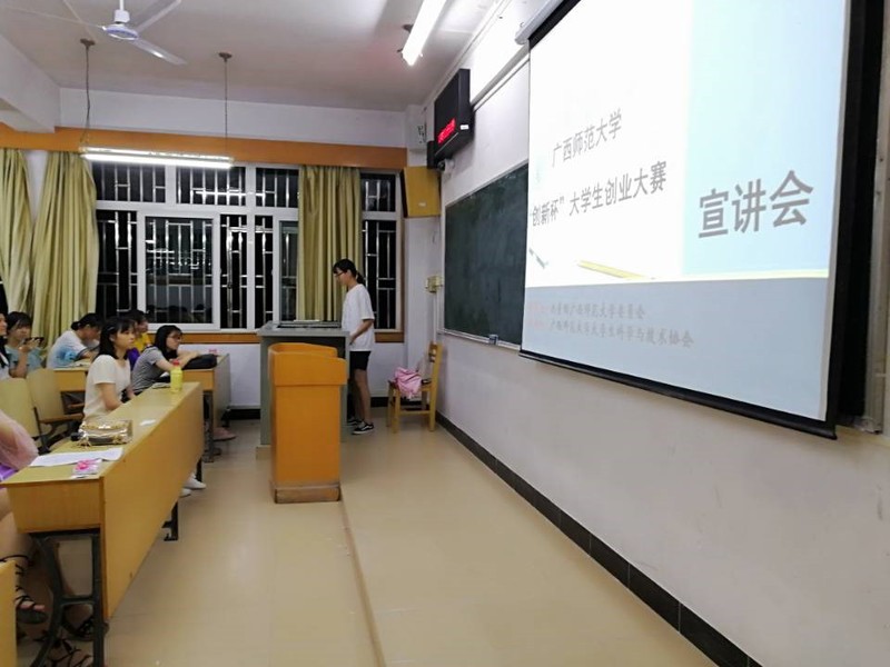 17、18级的同学们进行了晚点名之后,宣讲会就开始了。宣讲会中着重对大赛的流程、赛事的类别和奖励制度进行了宣传,详细介绍了大赛的四个类别——创业计划竞赛、移动互联网创业专项赛、公益创业赛和创业实践赛,大赛会对优秀的作品进行物质奖励。在做完对“创新杯”大学生创业大赛具体内容的宣传后,科协物理分会的成员们还对同学们进行了积极的鼓动,鼓励同学们积极参赛,多多和老师同学交流沟通,尽情地发挥自己的才能。