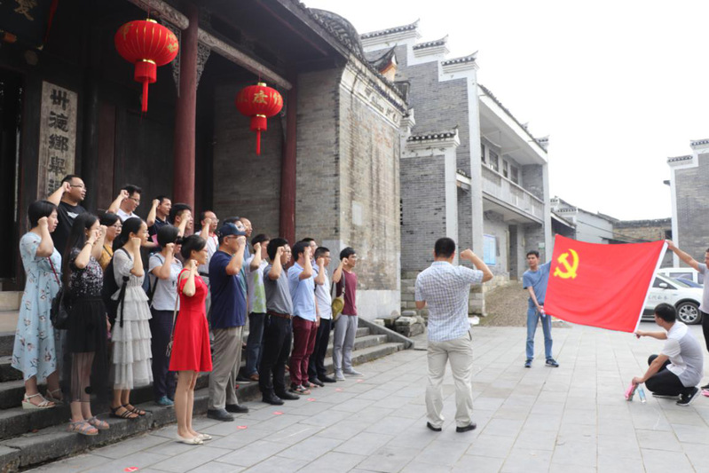 上午10时,教工党员在爱莲宗祠前高声朗诵《爱莲说》,感怀先贤对“濯清涟而不妖”高洁品德的追求;并在党旗前,再一次庄重地向党组织宣誓,重温入党初心,牢记使命。