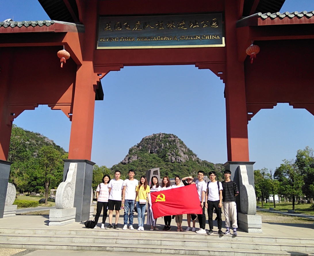 学生活动9月22日上午,研究生第一、第二党支部举行“不忘初心、牢记使命”主题教育暨庆祝中华人民共和国成立70周年主题党日活动,研究生党支部全体党员赴美国飞虎队桂林遗址公园进行了参观学习,勿忘国耻,振兴中华,致敬飞虎英雄。