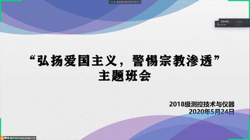 为增强同学们识别、抵制非法宗教的能力,同时弘扬爱国主义精神,5月24日,2018级测控技术与仪器团支部开展了“弘扬爱国主义,警惕宗教渗透”线上主题班会。