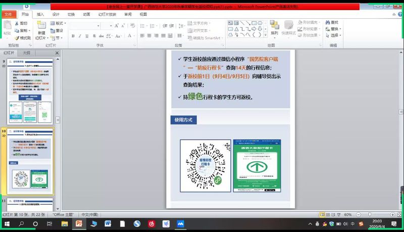 活动伊始,老师首先向同学们说明了需要暂缓返校的情况及疫情防控相关规定,加深了同学们对防疫知识的认识。紧接着老师讲解了返校前需要完成的各项工作和进校时的流程,让同学们对返校流程有了更深一步的了解。随后老师提醒同学们返校前要做好物品“四自备”,返校时积极配合工作人员完成学校的防疫工作,努力营造安心有序的校园环境。在会议的最后,老师提出了对同学们建议,希望同学们能认真落实学院疫情防控各项工作要求,返校途中注意安全,做好个人防护,做到平安返校。