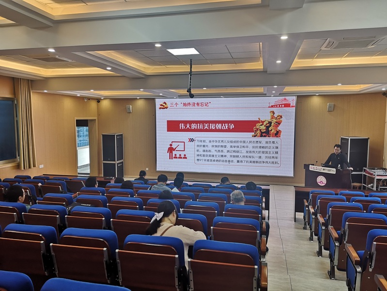 党日活动尾声,黄书记要求各位教工党员,要更加缅怀在伟大的抗美援朝战争中献出宝贵生命的先烈们,要更加铭记中国人民志愿军在抗美援朝、保家卫国的崇高事业中所建立的丰功伟绩。要为实现中华民族伟大复兴的中国梦不懈奋斗。