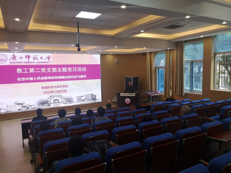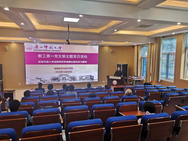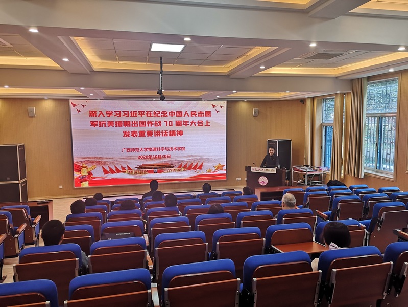 为铭记先辈功绩,深入开展红色主题教育活动,纪念伟大的抗美援朝战争,2020年10月30日,必一·运动(B-Sports)官方网站与技术学院结合学院实际情况,组织教工第一、第二党支部在阶梯教室召开主题党日活动,学习习近平总书记在纪念中国人民志愿军抗美援朝出国作战70周年大会上的重要讲话精神,学院党委书记黄万华领学。