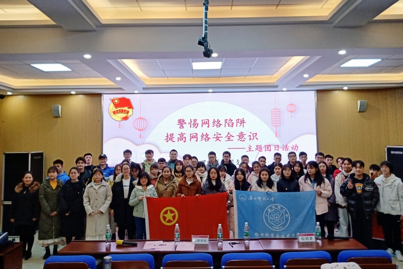 学生活动为提醒同学们警惕网络陷阱,提高同学们的网络安全意识,12月4日晚,2018级物理学第二团支部(以下简称“团支部”)在物理实验楼阶梯教室召开“警惕网络陷阱,提高网络安全意识”主题团日活动。活动由团支书主持,出席本次活动的有校团委代表、电子工程学院团委代表以及团支部全体成员。