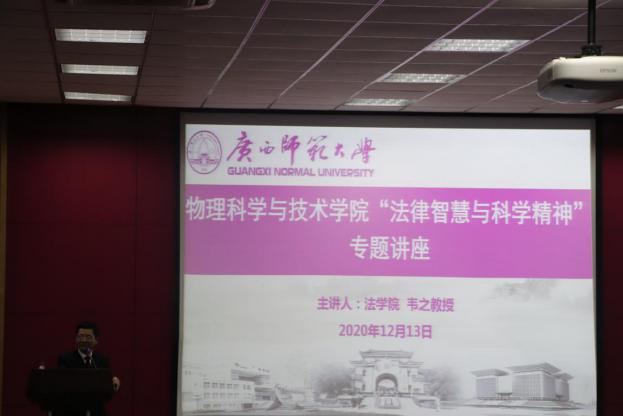 为学习习近平法治思想的基本精神和核心要义,2020年12月13日晚,必一·运动(B-Sports)官方网站与技术学院邀请我校法学院韦之教授,在育才校区第二理科综合楼111报告厅,面向我院学子开展“法律智慧与科学精神”专题讲座,学院2020级方馨雪同学主持讲座,副院长孙小军老师和辅导员朱彦光老师参与讲座。
