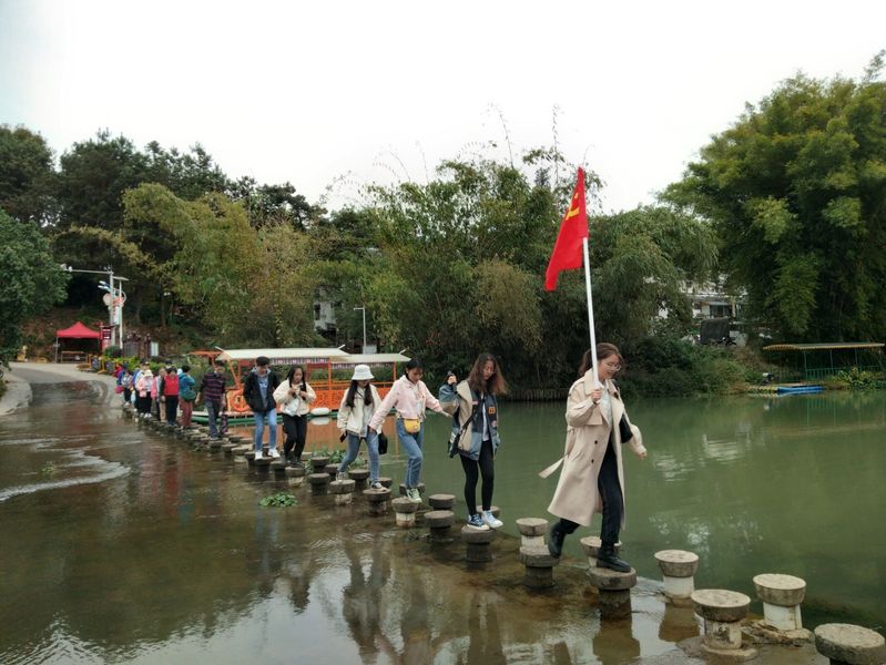 历经三小时的车程,党员同志们到达位于桂林恭城瑶族自治县莲花镇。下车后,党员同志们选择徒步前往红岩村。在冷风中的徒步前行,使同志们感悟到长征的精神,更加深切的体会到革命前辈在革命过程中不怕艰难险阻、英勇不屈的顽强精神和毅力。越过杂草、走过柿林,最终同志们到达目的地红岩村。红岩村内白墙青瓦的房屋林立,屋前溪水潺潺,屋后青山环绕。面对焕然一新的红岩村,党员同志们深切的感受到中国特色社会主义新农村的美好前景,坚定了跟党走的信心。活动最后,在支部书记的带领下,学生党员们在荷花池旁面对党旗重温入党誓词,面对鲜红的党旗,学生党员们更加坚定了全心全意为人民服务、为共产主义奋斗终身的决心。