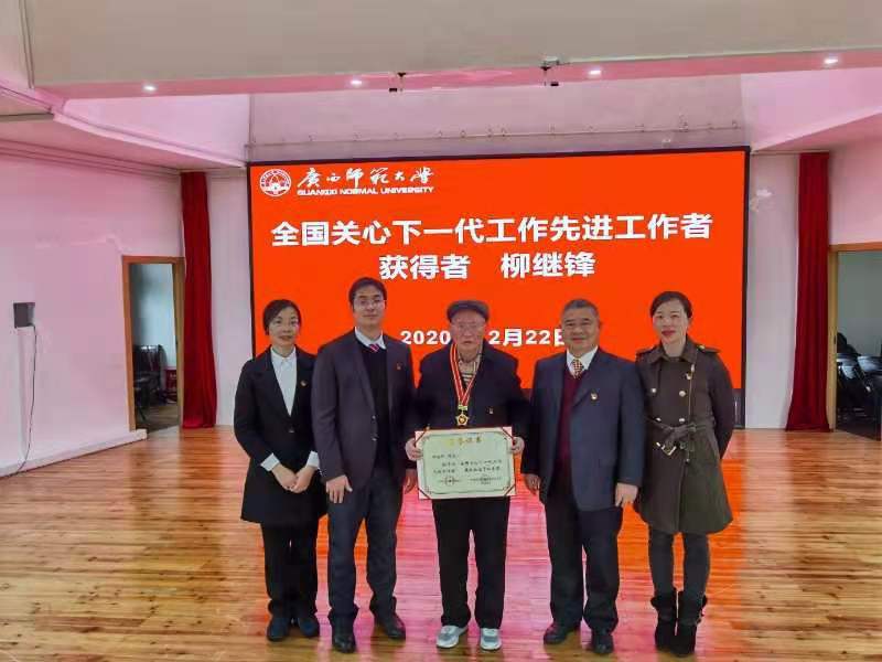柳继锋教授是一名80岁的退休老党员、老教授,曾任我校物理系主任,现任全国量子力学研究会常务理事,桂林市物理学会名誉理事长等职,曾获自治区科普先进工作者称号。现为学校“五老”宣讲团成员,必一·运动(B-Sports)官方网站与技术学院关工委常务副主任,多年以来,柳继锋教授为必一·运动(B-Sports)官方网站与技术学院关工委的组织建设、队伍建设和制度建设做出了卓有成效的贡献,受到师生的高度赞扬。