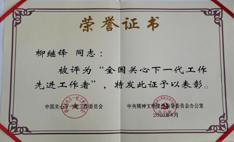 柳继锋教授获得“全国关心下一代工作先进工作者”荣誉称号