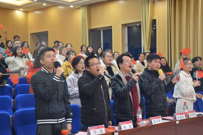 活动伊始,一首歌曲《不在犹豫》点燃全场,大屏幕上放映着的学院本科生党支部一年来的足迹,展现出同志们在新的一年勇往前行的决心,紧接着是“传承科学精神,践行初心使命”系列微党课新片发布会,全体到场人员一同学习,铿锵有力的诗歌朗诵《党之颂歌》,表达出同志们对中国共产党的崇敬之情,歌曲《我爱你中国》悠扬动听,展示出强烈的民族自豪感和爱国的热忱。节目表演之余,穿插了答题互动和师生送祝福环节,现场掌声此起彼伏,气氛不断升温。最后,晚会在全体人员合唱《红旗飘飘》中进入尾声,大家挥舞着手中的小红旗,共同歌唱对祖国浓浓的眷恋,晚会的气氛达到高潮,至此本次活动圆满结束。