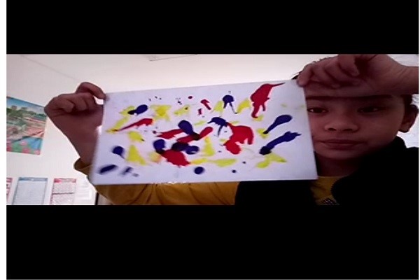 当日下午,志愿者给孩子们带来了一节独特的美术课——流动的颜色。给孩子们欣赏了一些由特殊方法使颜色流动起来,颜色相互融合的一些美丽的吹画来导入这节课程,在志愿者讲述完方法步骤以及注意事项后,孩子们迫不及待地想进入创作的环节,伸出自己的小手跃跃欲试。志愿者鼓励孩子们大胆创作、发挥想象力,不断完善自己的作品,勇于探索,勇于尝试,多多尝试使图画更加丰富、有趣。孩子们在创作过程十分认真,小心翼翼的保护好自己的作品,在创作过程中,孩子们观察发现当两种颜色在相遇混合后,会得到一些新的颜色。接着志愿者便给孩子们解释了三原色原理:简单地说任何颜色都可以用红、绿、蓝这3种颜色按不同的比例混合而成,这就是三原色原理。课堂结束之前孩子们兴高采烈地想大家展示自己的作品以及创作的故事。