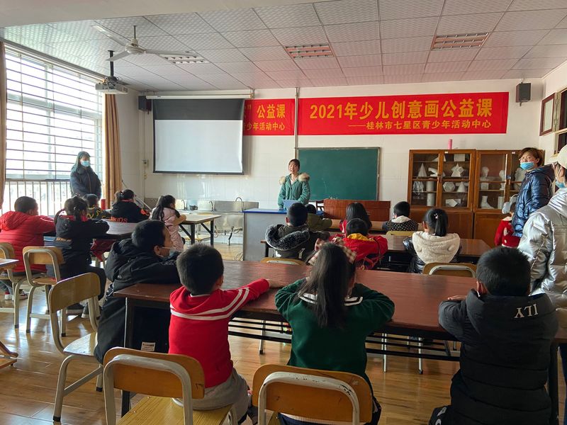 蒲公英团队的六位成员提前于约定时间到达穿山小学,在小学生活动中心迎接前来上课的学生。上课之前,蒲公英团队的小何老师做了简单的自我介绍,并且把上课的课堂纪律向同学们说明。
