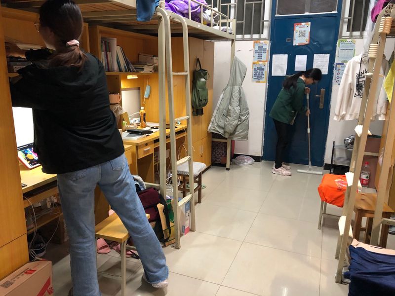 同学们在打扫宿舍