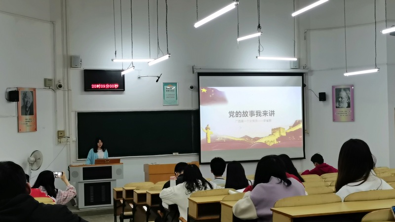 2020级本科生同学开展“党的故事我来讲”活动,同学们声情并茂地分享了自己了解到的党的故事、人物事迹。扶贫英雄黄文秀、广西第一位中共女党员李省群、“人民好公仆”焦裕禄等优秀共产党员的故事带领与会同学重温党的峥嵘时光,领略磅礴力量。同学们围绕遵义会议、“一把炒米”的故事、南昌起义等党的奋斗历程展开了激情的演讲,向大家讲述了一个个生动形象的故事,让大家在故事中学习优秀共产党人的精神,感受党的伟大。最后,全体同学跟读入党誓词并以本次活动为契机,牢记历史,展望未来,刻苦学习,努力成长为社会主义事业的建设者和合格接班人。