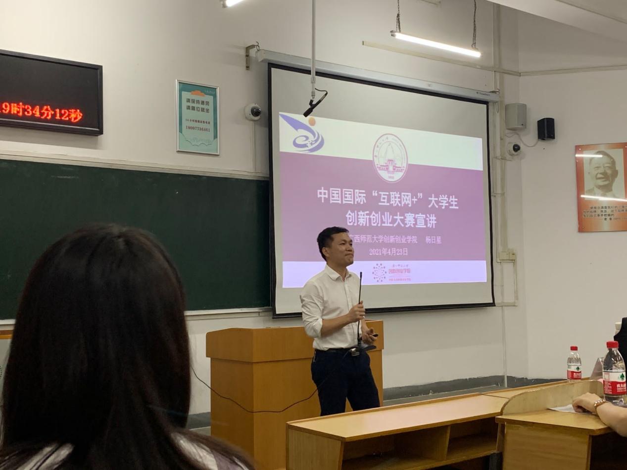 宣讲课上,杨日星老师以“互联网+”项目的基本概念作为切入点,带领同学们对“互联网+”项目进行了解。杨日星老师表示,“互联网+”是指利用互联网的平台、信息通信技术把互联网和包括传统行业在内的各行各业结合起来,从而在新领域创造一种新生态。宣讲过程中,杨日星老师深入浅出,向同学们说明参赛情况及大赛总体流程,并辅以事例使得同学们能对“互联网+”大赛有更透彻的了解。其后,杨日星老师结合个人经验及评审经历给出了选题建议,并表示,“互联网+”项目一定要讲求创新性和团队性。大家的“互联网+”项目要从实际问题出发,找准参赛的具体切入点,并进行可行性分析。参赛过程中要尽量构建高效融洽的团队,注重对项目连续性的坚持,并及时沟通调整。