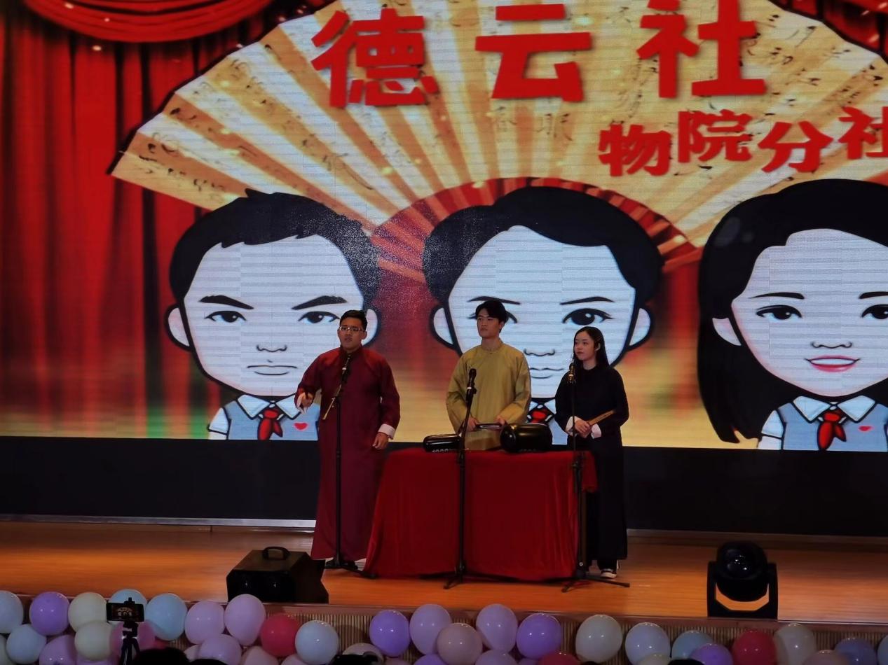 大学是奋斗的战场,也是恋爱的花园。恋爱是什么样的滋味?2017级物理学四班的一段小品《恋爱是种病》将答案演了出来,赢得了观众们热烈的掌声。6月,注定是一个离别的盛夏,一段由19级物理二班表演的情景剧《不想毕业》,生动地表达出毕业生们对母校的不舍。压轴节目,是老师和学生们一起带来的朗诵《勿忘青春,理续芳华》。没错,大学只是每个大学生的一段征程,毕业后,将会有新的征途等着他们。最后一个节目是2017级全体学生合唱《后来又在晴天再见》,晴天,多么美好的天气,即使毕业了,也能在美好的晴空下再相聚。