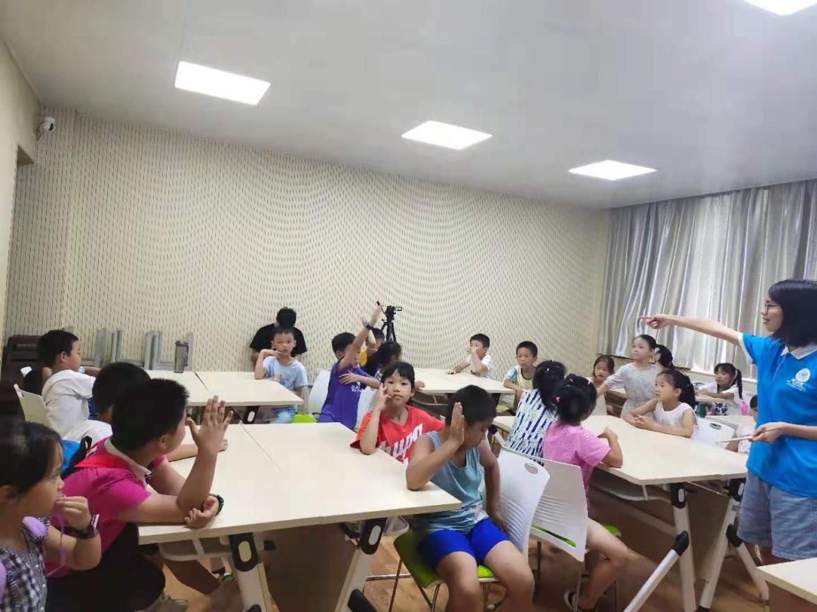 暑期夏令营的第四节课的名称为“刮刮转风车”。上课时愿者先通过提问生活中会旋转的物体,激发同学们上课的热情。然后志愿者带学生了解“什么是振动?”引导学生把手放在喉咙上,让学生们直观地感受到我们自己身上的振动——带来了一种酥酥麻麻的感觉,让同学们在课堂上感受到了振动现象。