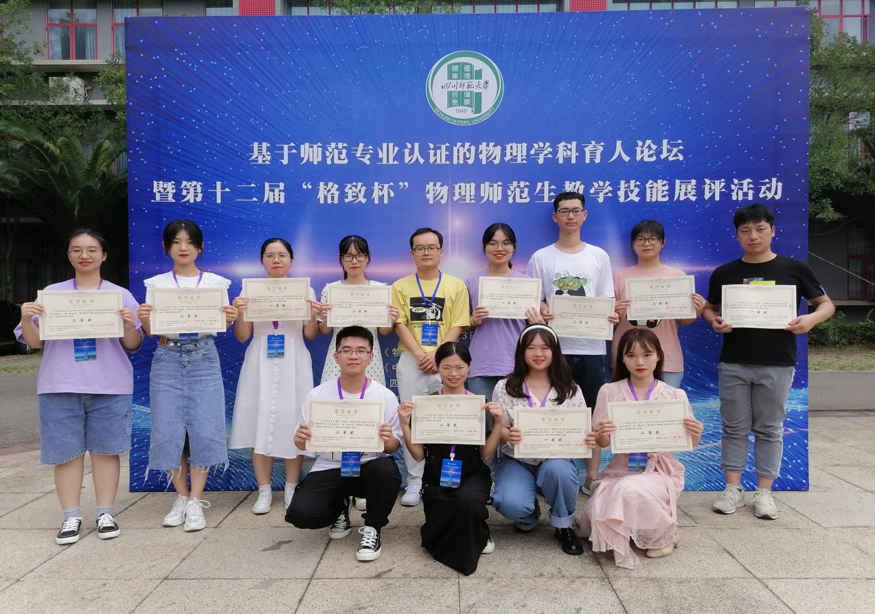我校学生在“物理课堂教学技能展评”类别中,本科生黄秋玲获得一等奖;本科生韦东杏、王雪琪、黎炜,研究生刘真玲、高寒萱获得二等奖;本科生唐子茵和研究生刘政获得三等奖。
