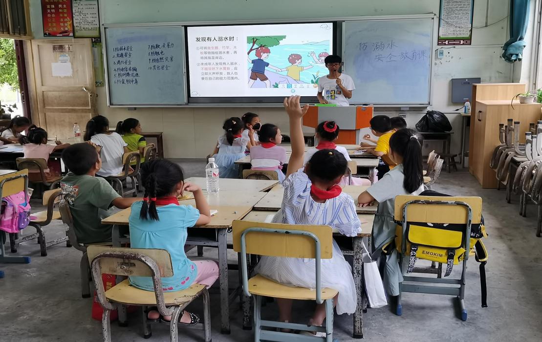 接着是防溺水安全教育课,保护自身安全是一切的前提,为了强化孩子们的安全意识,使孩子们的印象更加深刻,志愿者加入许多互动环节,活跃课堂气氛,并巧妙地设计了“有奖竞答”的环节,充分地调动了孩子们的学习积极性。经过一节课的学习,孩子们了解了如何预防溺水事故的发生,掌握了安全自救的技能与方法。