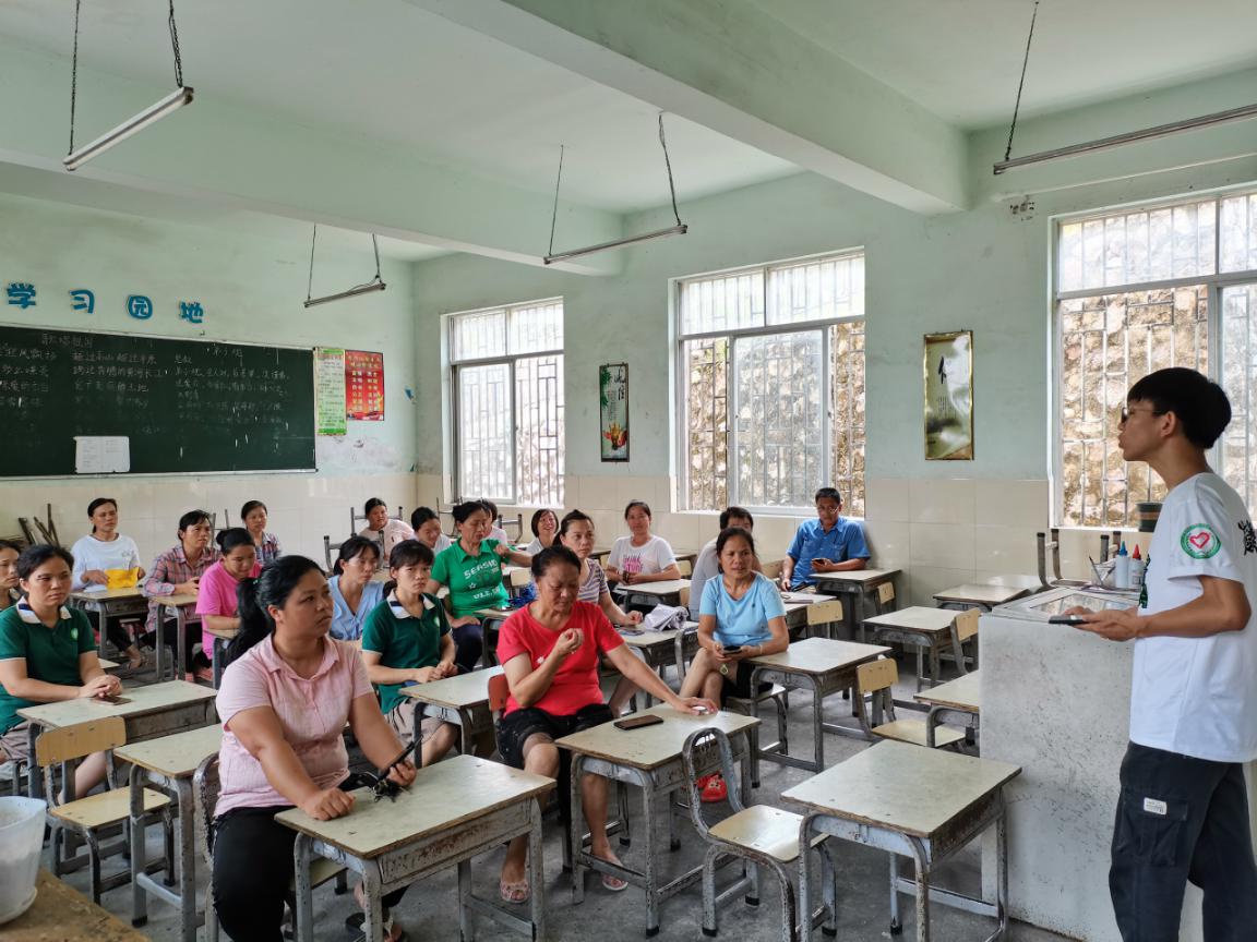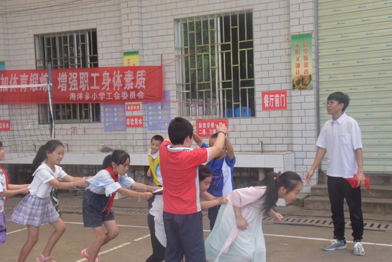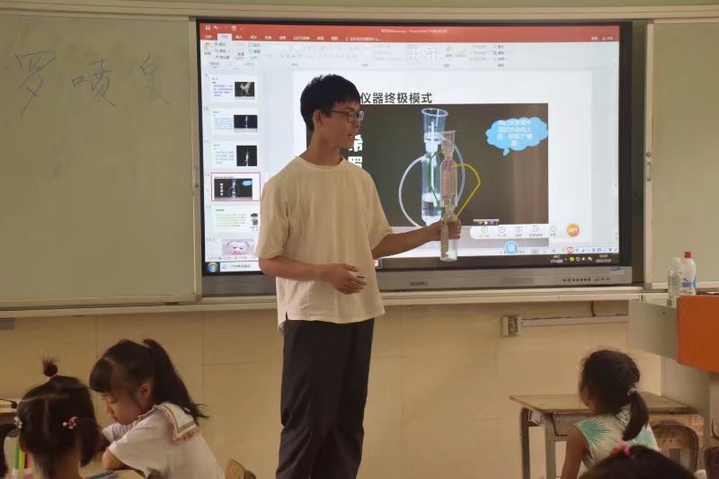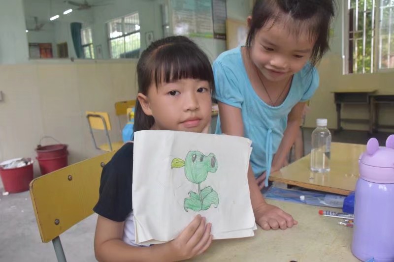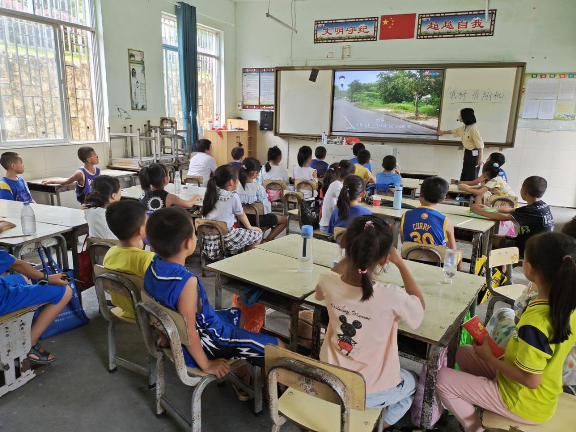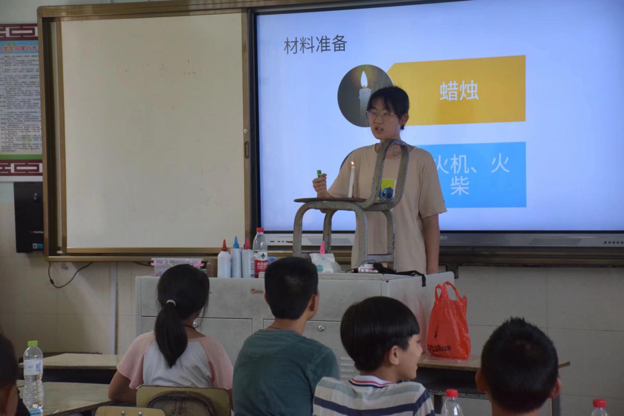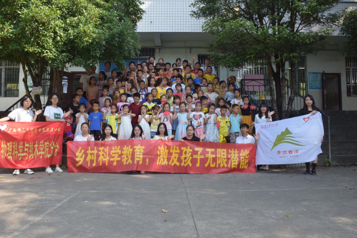 学院新闻 自7月10至7月23日,广西师范大学云峰支教团队前往桂林市灵川县海洋乡的海洋中心校开展“灵川之旅,公益之行”支教活动。在支教过程中,团队开展了实验课、科普课、手工课、英语课等课程,队员们和小朋友们在课堂上进行了一个个有趣而精彩的实验、动手制作一个有一个精美手工,孩子们也通过科普课堂了解更多奇妙的知识。团队携手小朋友们以趣味课堂的方式,共同筑梦乡村教育公益之路。正式开始前,团队与家长进行沟通,向家长介绍支教活动的详细内容及注意事项使家长更放心,更安心。课堂上,队员们事先分发材料,紧接着一步步带领小朋友们进行手工制作,锻炼了小朋友们的动手能力。小朋友们在课堂上认识到中国的剪纸文化的同时,自己也动手体验剪纸的过程,完成自己的作品,也进一步加深的对剪纸的了解。在课堂上,小朋友们通过教具观察到希罗喷泉神奇的实验现象,对其原理有了更深的了解,也进一步激起了小朋友们对科学探究的浓厚兴趣。在点火熄火实验中,通过点燃吹灭后蜡烛产生的白气,让孩子们进一步了解了隔空点火的神奇现象。除了室内的科普课,队员们还会增设户外的活动,小朋友们分组合作参加游戏,既锻炼了身体,也加强了与小组队员的合作能力。在第二天的科普课上,小朋友们不仅在课堂上认识了纸杯滑翔机,还了解了它们的原理及学习了如何制作纸杯滑翔机。另外,团队在美术课上培养小朋友们在“美”方面的能力,在课程上使小朋友们得到全能的发展。