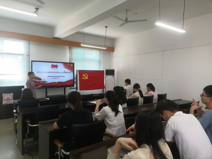除此之外,在支部书记张瑜洁老师带领下,同志们重温了习近平总书记在庆祝中国共产党成立100周年大会上的讲话的部分片段。讲话系统回顾了中国共产党成立一百年来,团结带领全国各族人民开辟的伟大道路、创造的伟大事业、取得的伟大成就;庄严宣告实现了第一个百年奋斗目标、全面建成了小康社会,郑重宣示坚持和发展新时代中国特色社会主义、向全面建成社会主义现代化强国的第二个百年奋斗目标迈进的坚定决心,深刻阐述了以史为鉴、开创未来的根本要求,同志们感受颇深。