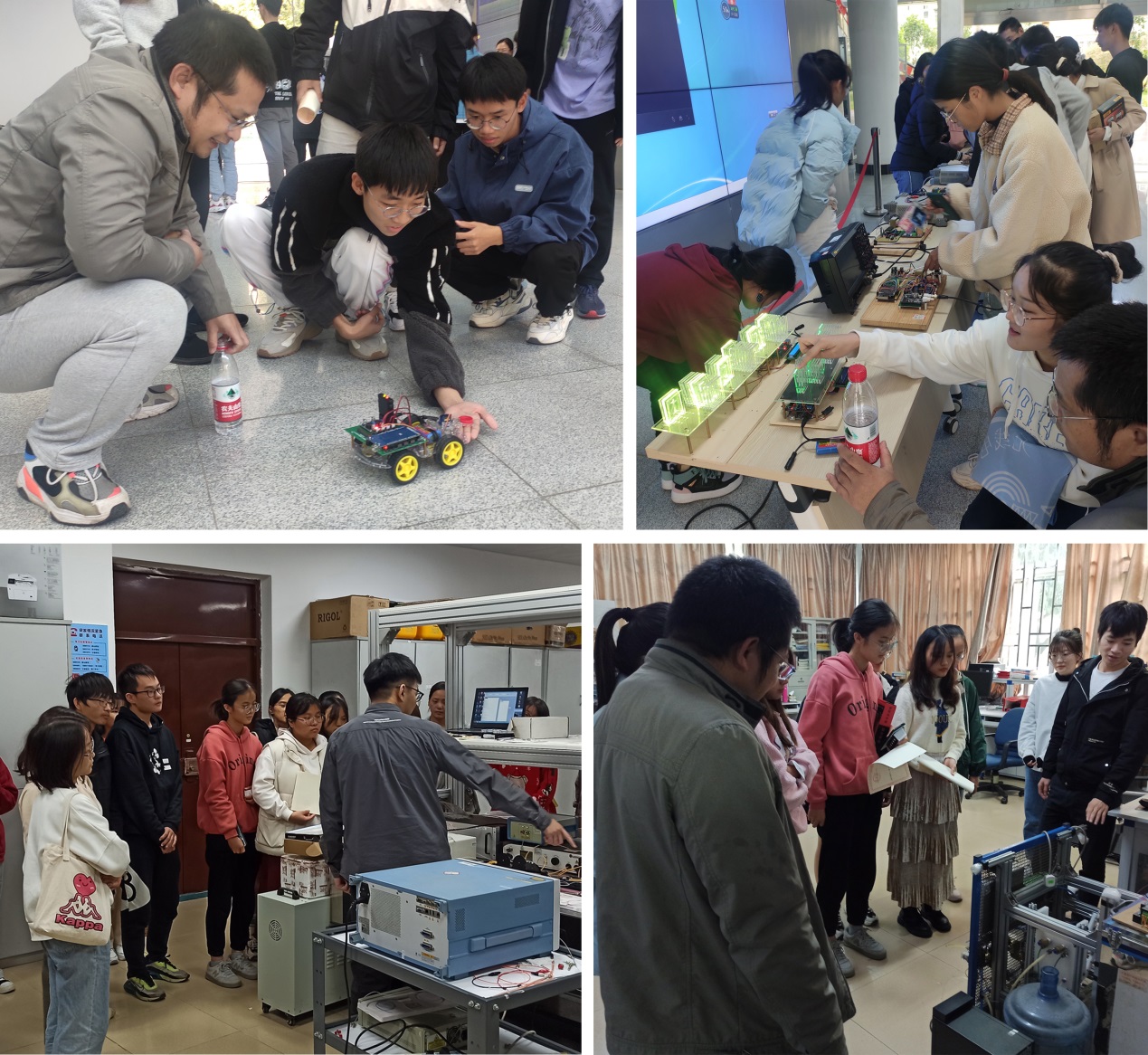 为丰富低年级同学的视野,激发大家的学习热情,闭幕式后在测控技术教研室的组织下,带领同学们参加了两个小活动。一是由无线电爱好者协会特别为大家举办一场电子作品展,让同学们亲自体验的高年级同学自行设计的电子作品,增加同学们对电子设计的兴趣;二是分批次参观了“光纤传感技术”和“系统分析与集成”方向的科研工作室,让大家近距离了解老师和研究生们的科研工作和日常。学院分管本科教学工作的孙小军副院长也在闭幕式后赶来看望了大家,并询问了参赛同学的设计作品,也表示希望此类的活动能够越办越好,让同学们将理论知识充分投入到实操训练当中,不断磨练技能,提升自己。