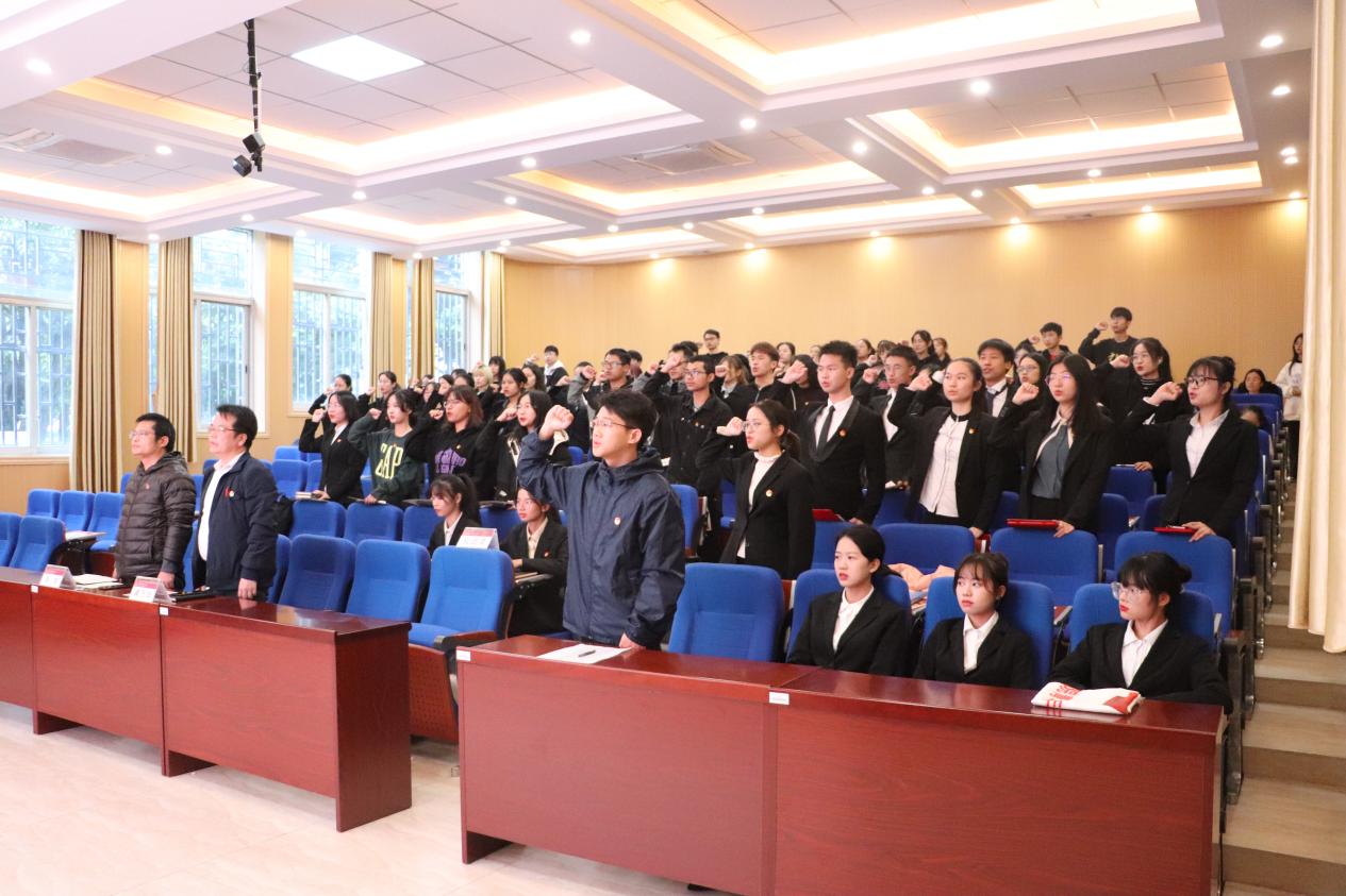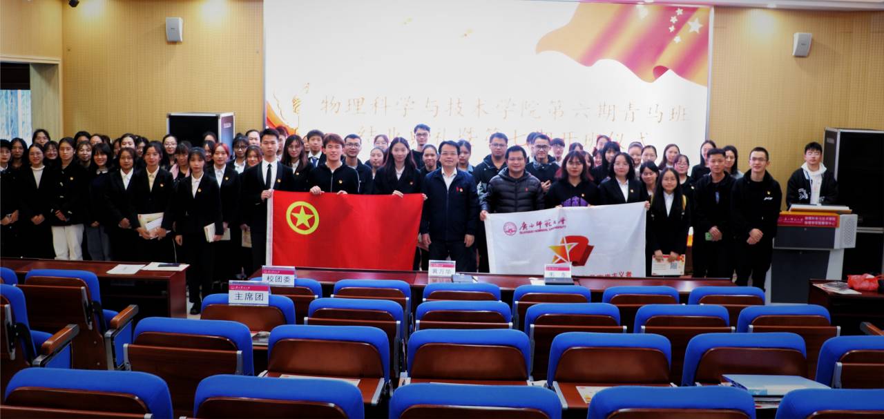第七期“青马班”班长发言并带领全体学员宣誓。青马班是锻炼品格意志,提高工作水平和思想觉悟的大课堂,希望学员们经过庄严宣誓后,在未来用拼搏与勤奋践行承诺,努力成为勤奋刻苦,勇于实践的青年马克思主义者。第六期青马班班长、团支书和第七期班长、团支书进行青马班授旗仪式。