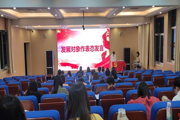 根据会议议程,清点到会人数后,由13名发展对象对党的认识、入党动机等进行汇报。接着,入党介绍人朱彦光书记和谢雪云同志分别介绍发展对象情况。随后,支部委员郭泽蓓同志代表支委会向大会汇报了曹今龄等13名同志的政审情况,有关材料齐全,可以提交大会讨论。与会党员进行充分讨论并对发展对象的入党问题表明了自己的态度。随后,进入大会表决议程,在场的正式党员采取无记名投票的表决方式,一致认为同意接收曹今龄等13名发展对象为中共预备党员。最后,由发展对象进行现场表态,同志们纷纷表达对党组织的培养的感恩,将以党员的标准严格要求自己,愿意为共产主义事业奋斗终生。发展对象表态之后,由支部书记带领进行庄严而神圣的入党宣誓仪式。与会人员全体起立,在支部书记朱彦光同志的领誓下,举起右拳,郑重宣誓。