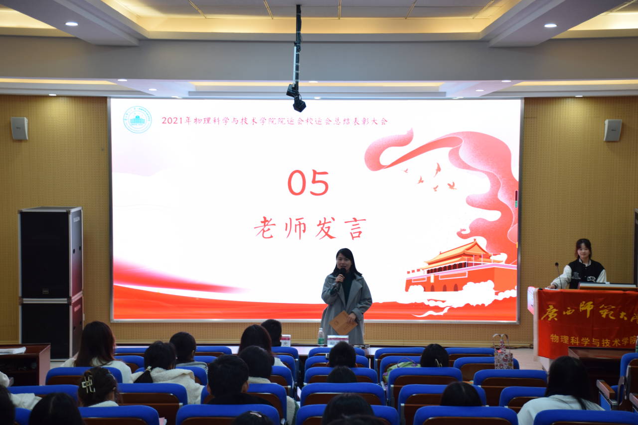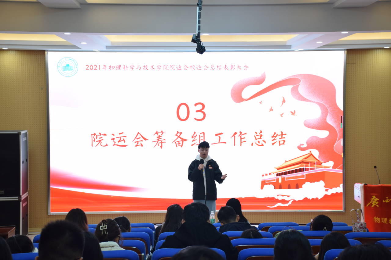 学生活动2021年11月25日晚上,必一·运动(B-Sports)官方网站与技术学院在物理实验楼阶梯教室举行2021年必一·运动(B-Sports)官方网站与技术学院院运会校运会总结表彰大会。出席本次会议有团委负责人、团委相关负责人和物理学院学生会全体成员。会议由莫慧令主持。