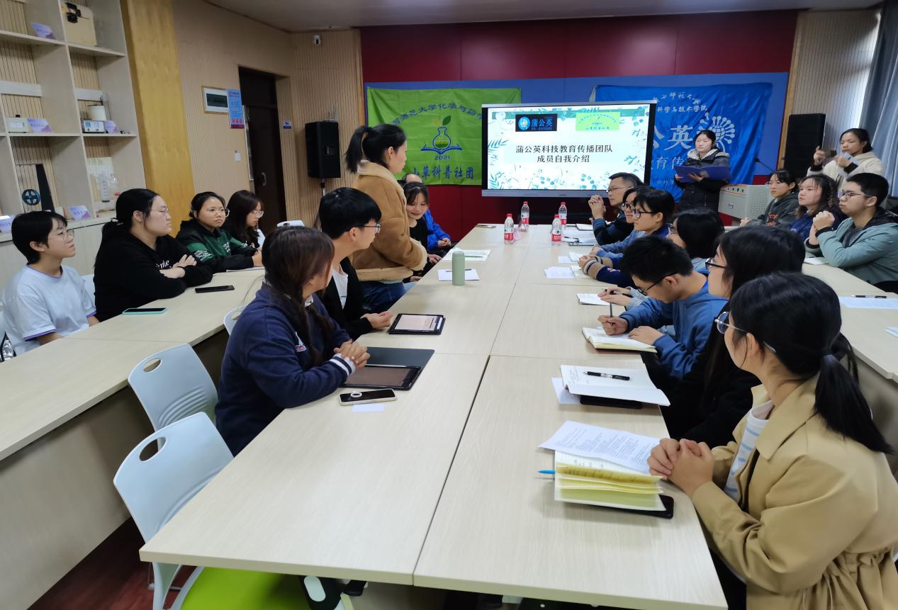 首先由主持人介绍到场老师,接着由蒲公英团队和小草科普社团的负责人介绍团队与社团情况,包含团队、社团的目标、职能部门、成员分布和举办过的活动,然后是成员们开始自我介绍。在了解对方的基本情况后,就到了相互交流经验的时候,小草科普社团从科普创意、物资管理和任务分工,活动周期等与蒲公英团队进行了交流。蒲公英团队也从宣传平台,活动存档等与小草科普社团讨论每位老师和成员也提出自己的看法和意见,从发现问题到解决问题的过程中,对每位成员来说都是受益匪浅的。交流结束后,蒲公英团队带小草科普社团参观了4楼的实验室和优秀作品,小草科普社团还赠送了自己设计的文创礼品。