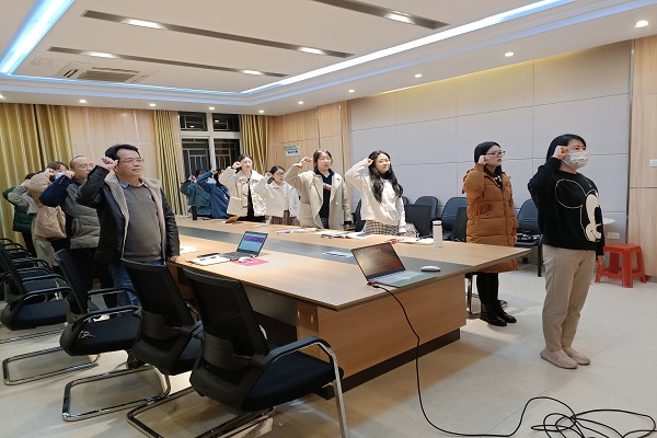 全体党员同志合唱《我和我的祖国》并重温入党誓词。