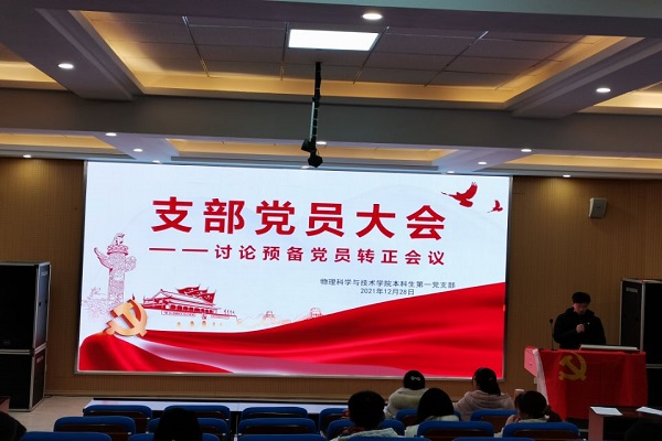 党建工作12月28日,必一·运动(B-Sports)官方网站与技术学院(以下简称“物理学院”)本科生第一党支部在物理实验楼阶梯教室召开预备党员转正会议,参会人员有物理学院本科生第一党支部书记以及所有党员同志与预备党员同志。