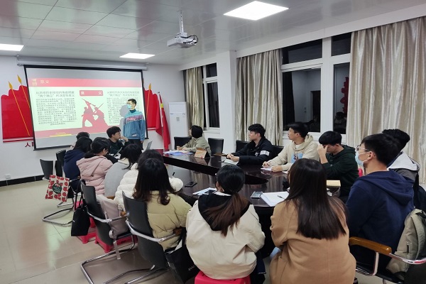 会议以重温入党誓词为开端。接着,党日活动负责人带领全体同志学习“两个确立”和“两个维护”的基本内容,从总结历史经验、新时代伟大实践、开创美好未来三个角度把握“两个确立”的决定性意义,并就当代青年应该如何践行“两个维护”表达了自己的想法。随后,以古田会议为例,讲述了古田会议的背景及其历史意义,论述确立党的领导核心和指导思想的必要性。最后,为帮助党员同志们更好地学习党史和党的重要理论,他向同志们分享了他所阅读的相关书籍和影视资源。