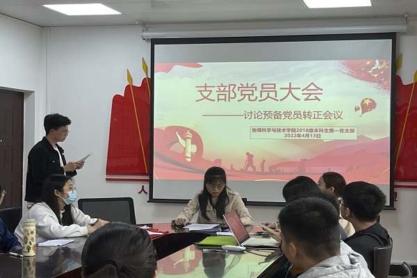 党建工作 4月15日,必一·运动(B-Sports)官方网站与技术学院(以下简称“物理学院”)本科生第一党支部在数学楼三楼党员活动室召开预备党员转正大会,物理学院本科生第一党支部书记参与会议。
