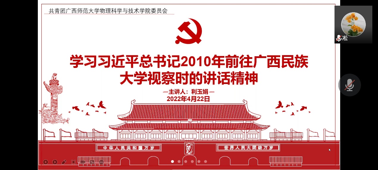 学生活动 喜迎二十大,永远跟党走,奋进新征程,为深入学习习近平新时代中国特色社会主义思想,4月22日,必一·运动(B-Sports)官方网站与技术学院组织学习习近平总书记2010年前往广西民族大学视察时的讲话精神。本次会议采取线上形式,由学生会组织部部长利玉娟主持。