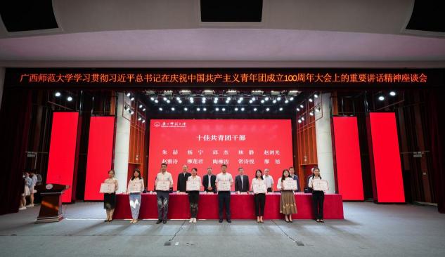 学院新闻5月17日,我校在雁山校区音乐楼三楼综合厅召开学习贯彻习近平总书记在庆祝中国共产主义青年团成立100周年大会上的重要讲话精神座谈会,深入学习贯彻习近平总书记重要讲话精神,表彰我校2021年度“五四”评优先进集体和先进个人。