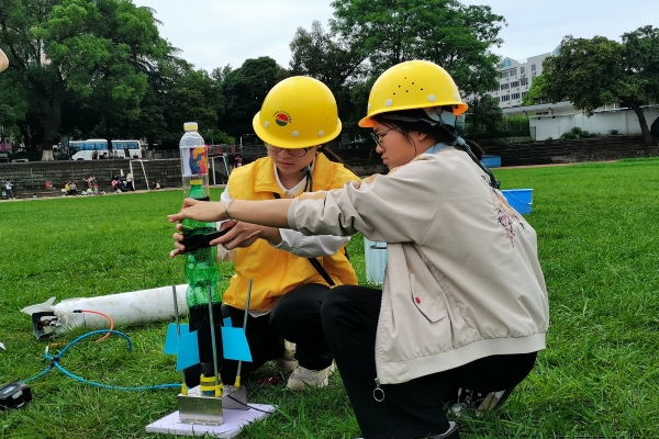 大赛分为水火箭和电池小车两个项目进行,电池小车的制作和比赛、水火箭的制作在室内进行,水火箭的比赛则在大田径场进行。活动初期,志愿者对选手进行赛前培训,让选手更好了解并制作作品。