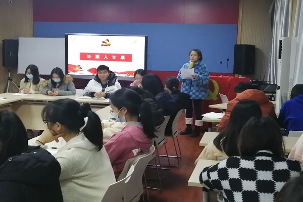 接下来由支部委员郭泽蓓同志介绍候选人有关情况。随后,4位增补委员候选同志分别进行竞选发言。在进行计票的同时,支部书记朱彦光同志为即将卸任的支委们颁发聘书,感谢他们在这半年来的付出。随后,经过与会正式党员的酝酿讨论和投票表决,本支部新增3名支部委员,分别为组织委员、宣传委员和纪律委员。紧接着,新增支委同志轮流发言,他们都表示感恩党组织的栽培与信任,在今后的工作中会尽职尽责,完成自己的本职工作,与支部的其他同志一起把支部建设得更好。