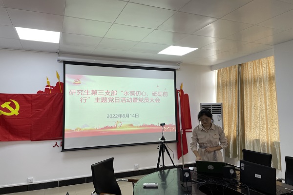 党建工作 在中国共产党第二十次全国代表大会即将召开之际,2022届毕业生即将离开母校之时,为加强毕业生党员教育,充分发挥党员先锋模范作用,加强党性修养,提高毕业生党员的战斗力和凝聚力,以实际行动为党旗填辉,为母校添彩,2022年6月14日,必一·运动(B-Sports)官方网站与技术学院研究生第三党支部在第二物理实验楼302党员活动室开展“永葆初心,砥砺前行”主题党日活动暨党员大会。活动由宣传委员符历银主持。
