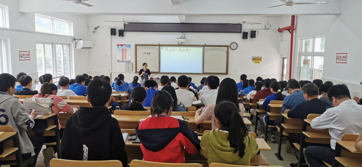 上午十点,学院领导老师在全州高中老师以及实习生代表的陪同下来到了第二教学楼106教室进行公开课观摩活动。本次公开课由实习生代表黄寒妙讲授,讲授的内容为《电荷》,物理教研小组、全高教师代表以及全体实习生参与。