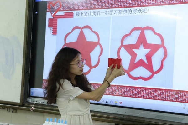 支教期间,云峰支教团队考虑到乡村中的小孩子们的课外知识相对匮乏,为了利用自身学科优势来提高孩子们的思考、动手能力,给孩子们打造一个优质的课外知识平台,我们面向海洋乡小学三至五年级的学生开设了物理小实验课、科普课、手工课与美术课三大类课程。应地方学校要求,我们还开展了素拓课,组织孩子们进行大扫除及体育运动。在物理小实验课上,志愿者们通过简单易做的物理小实验让孩子们在动手中观察到神奇的物理现象,并从中加深对物理知识的认识与理解;在科普课上,志愿者们向孩子们讲述了天文知识,帮助孩子们初步探索了浩瀚的宇宙、激发孩子们探索科学的好奇心;在手工课与美术课上,志愿者们教孩子们剪纸与扎染,让孩子们在实践中感受到优秀传统文化的魅力。