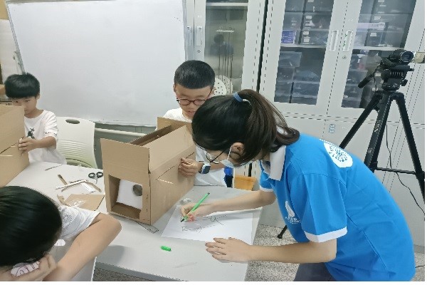 学生活动2022年7月21日,蒲公英暑期科技夏令营第四次课程——“投影魔盒”于物理实验楼四楼如期开展。