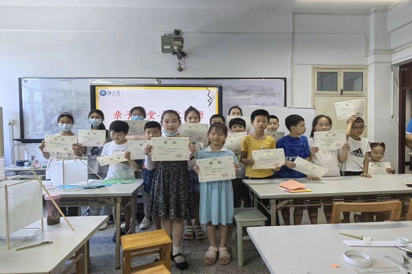在走马灯制作结束之后,主讲老师通过问答的方式带领大家回顾了课堂上所学的知识,学生们踊跃举手回答。之后,老师们为小朋友们颁发奖状并合影留念,鼓励大家继续探索科学知识。亲子课堂在大家的欢声笑语中结束。
