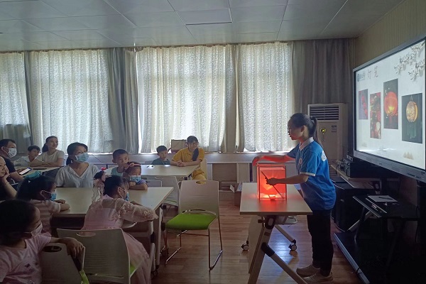 课堂伊始,老师给同学们出了两个与灯相关的谜语,同学们纷纷动起脑筋猜谜底,兴奋地举手说出自己心中的答案。在谜底“灯”被说出后,主讲老师为大家详细地解释了谜面隐藏的含义,以此引出本节课的主题——走马灯。