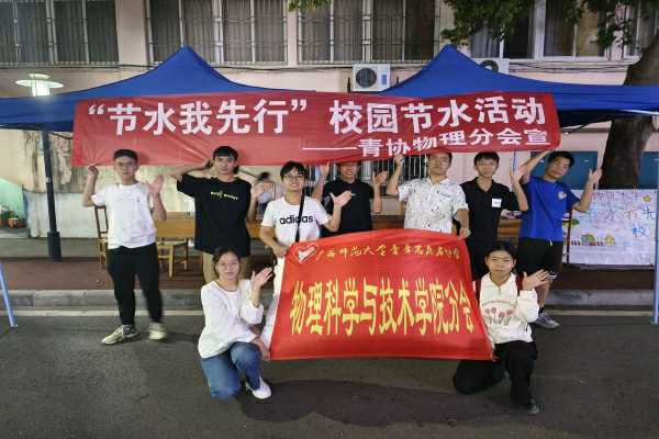 学生活动一花一草一世界,一水一河一地球。为贯彻落实科教兴国,人才强国战略重要论述,积极践行“清廉师大”建设要求,推进清廉社团建设;同时也为响应国家环境保护局提出的“节约用水,珍惜生存环境”倡议,确保水资源的可持续发展,逐步提升同学们节约用水的意识,加深师大学子珍惜水资源的观念,广西师大青协物理分会于2022年10月17日在育才东苑食堂门口开展了校园节水活动,本次的活动面向广西师范大学全体学生。