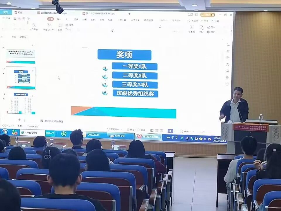 韦东老师作总结发言,他不仅表示了对本次竞赛举办的肯定,还对同学们寄予厚望。他讲述了现阶段我国研制芯片的艰难,在如今中国共产党领导的和平时代,让我们坚持中国共产党的领导,关心国家,关心党的二十大,继续努力成为国家未来的支柱。