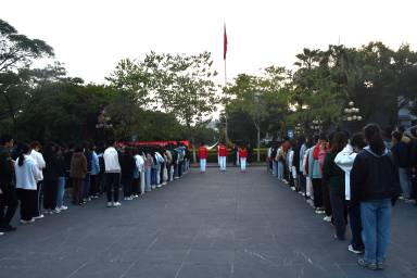 当日早晨,全体师生集合后,升旗仪式正式开始。全体师生庄严肃穆,注目着国旗护卫队护送国旗入场,只见他们迈着整齐的步伐,伴着庄严嘹亮的国歌,五星红旗冉冉升起,全体师生深情注目,齐唱国歌,最后宣誓,表达了对祖国的无限热爱与崇高敬意。
